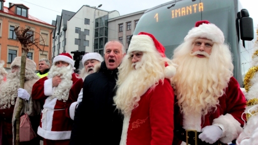 ZIBAKCIJAS BILŽU GALERIJA. Kā Latvijas, Lietuvas un Igaunijas Ziemassvētku vecīši apstādināja satiksmi un uzbūra brīnumu rīdziniekiem (7)